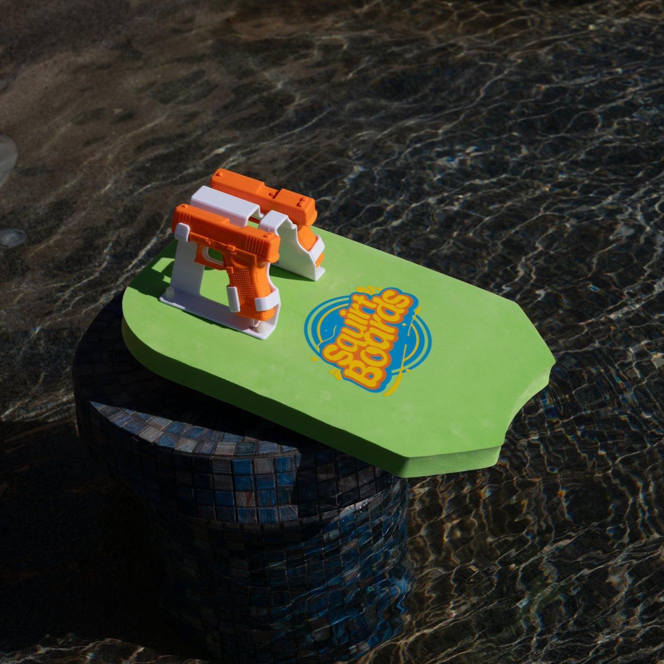 SquirtBoard™ keeps the fun going with dual squirt guns that pull water directly from the pool.